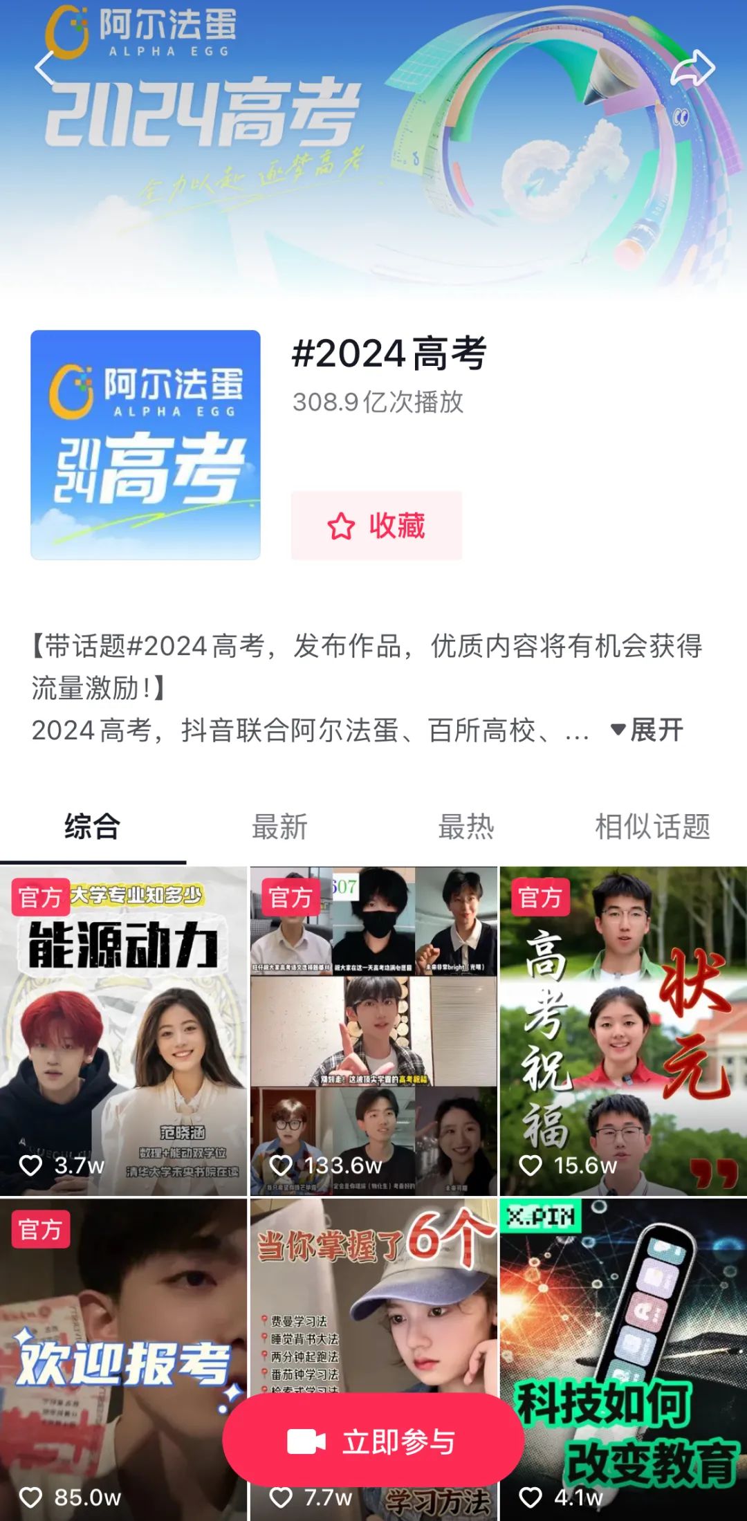 三是,好的節點營銷,也可以是一次知識普惠。抖音#2024高考 在內容端的深度聯動,實則是在打破信息差,實現知識普惠,讓知識內容的價值得到最大化的釋放。