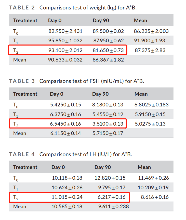 ▲圖:T0為對照組,不做任何干預;T1是飲食控制+二甲雙胍,T2是飲食控制+種子循環。圖源,參考資料15。T2組的體重、FSH、LH水平下降更明顯。