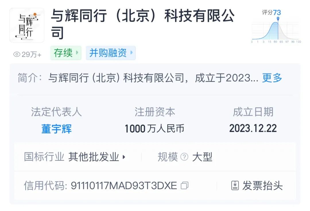在巨大的輿論危機之下,東方甄選成立與輝同行,並將董宇輝註冊成為唯一的執行董事和總經理,分成兩個獨立品牌來運營。如果兩個品牌可以共同發展,不失為一條出路,但事往往不遂人願。