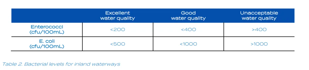 世界游泳聯合會的《開放水域游泳手冊》指出,“這兩種細菌是監測糞便污染的可靠指標”。