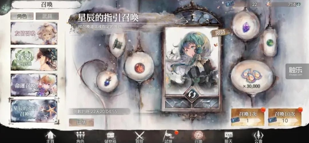 在《星落》中,小、大保底分別為70抽、140抽,6星角色基礎出率為2%,這個概率大約是主流二遊的2倍。從卡池設計來看,除了大、小保底制度,《星落》並不屬於“米池”,更像是2019年前日式二遊的常規卡池形式。而考慮到相對價格,遊戲在前期資源發放極多,玩家對價格的實際感受應該會更低一些。