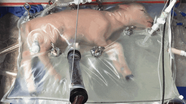 這個時候,人造子宮就會營造一個類似子宮的環境,好讓胎兒在出生後的好幾周內,能在裏面繼續發育。