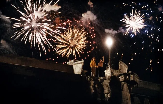 《新橋戀人》,大小姐愛上流浪漢,男方用槍打爛自己的手指,兩人在橋上共度了最落魄也最野性的煙花之夜。