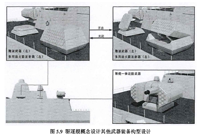 艦載武器方面,該艦將倚重電磁軌道炮與定向能武器,特別是定向能武器,高能激光炮將承擔起近程防禦與反艦的重任,微波武器則主要應對大行其道的無人機蜂羣。另外,該艦還於尾部機庫上方設置有一座彈炮一體近防武器,技術思路與俄海軍“鎧甲-M”彈炮合一近防系統頗為相似。