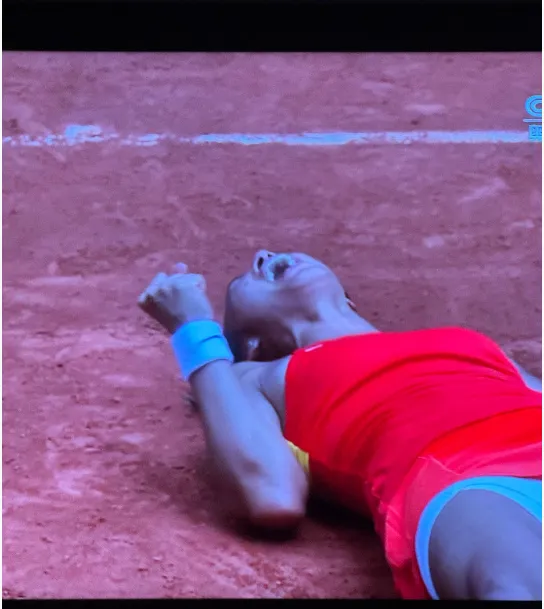 贏下比賽後,鄭欽文躺倒在紅土上怒吼,這一幕,我會永遠記在心裏: