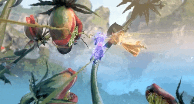 三人穿梭於在不同空間,時而漫天飛沙,時而遍野青草,時而巨大恐怖的食人花。
