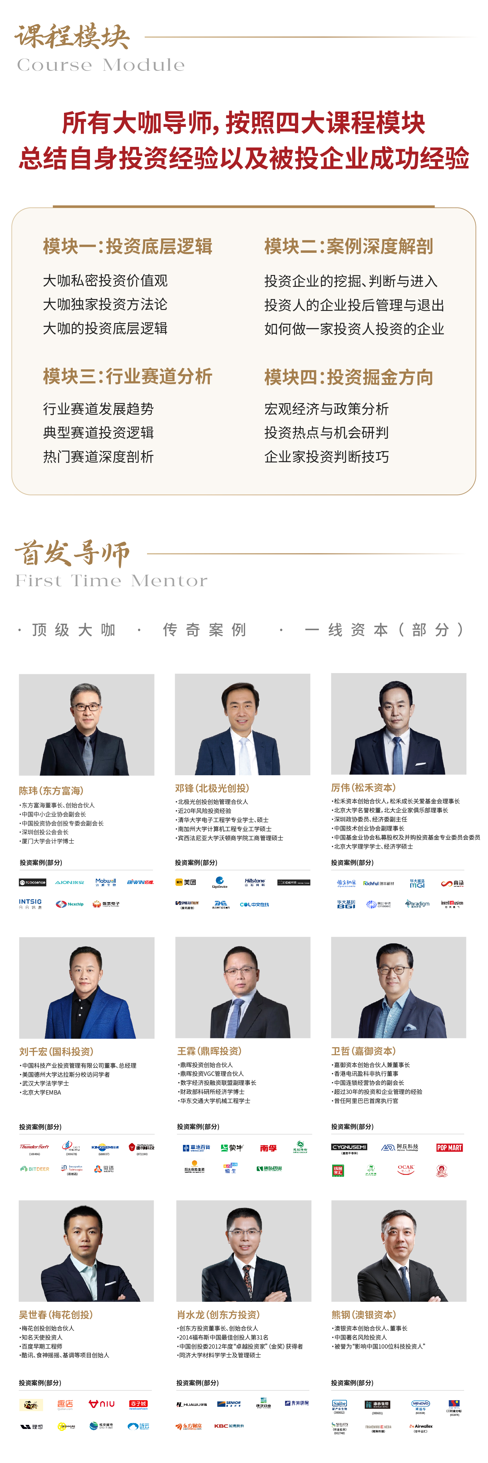 彙集全國一線資本大咖,親授精華濃縮課程,覆蓋大消費、硬科技、大健康、智能製造、新能源、新一代信息技術等10+熱門賽道與重點產業的投資底層邏輯、案例深度解剖、行業賽道分析、投資掘金方向等等內容。