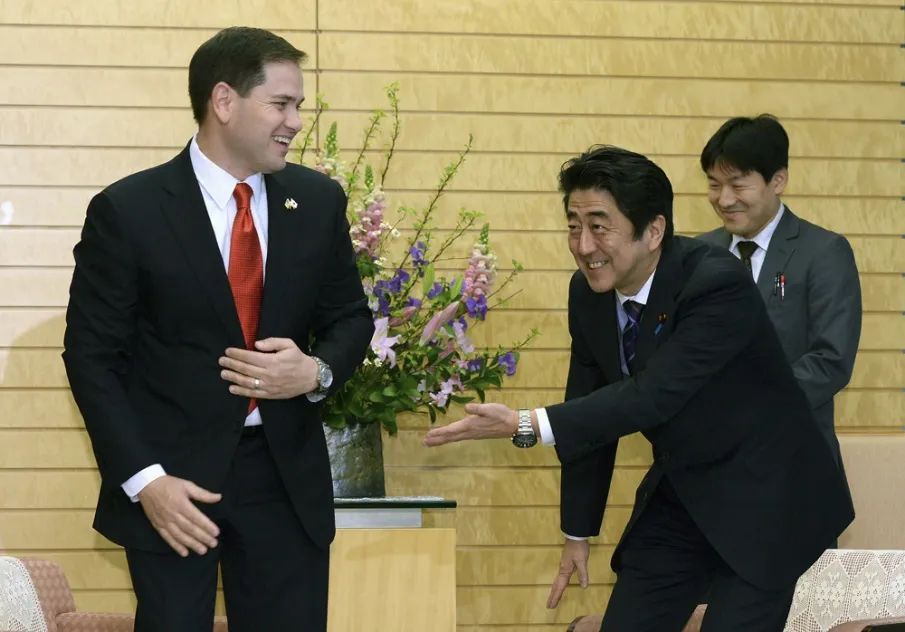 2014年,美國參議員盧比奧訪問日本,受到超高規格階段。日本首相安倍晉三一路陪同,對其卑躬屈膝,把自己擺在了很低的位置。就算日本是美國半個殖民地,作為日本首相,安倍晉三和美國州長/參議員至少是平級關係。為什麼他要如此討好盧比奧呢?