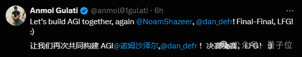 沙澤爾更是Transformer八位作者之一,還被公認為“貢獻最大”——他根據自己的想法,重新編寫了整個項目代碼,把系統提升到了新的水平,使得Transformer項目“拉開了衝刺的序幕”。