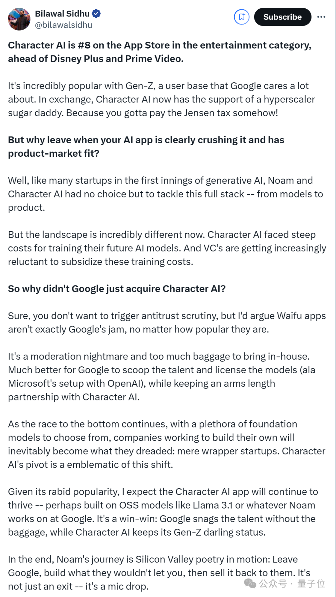 但現在的情況已經截然不同了。Character.AI作為一家初創公司,在訓練基礎模型方面面臨着高昂的成本,而風投們越來越不願意補貼這些費用。