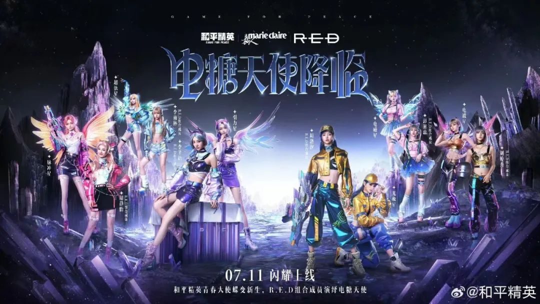 這場獨一無二“跨圈層”出道,從品牌到綜藝,再到藝人組合,都算得上是一次先鋒嘗試。對於《和平精英》而言,在煥新遊戲內外素材的同時,就在貫徹“女團營銷”思路,除了邀請真人女團進行“演繹”女團風皮膚,還在此之前推出電糖天使“和”夥人。