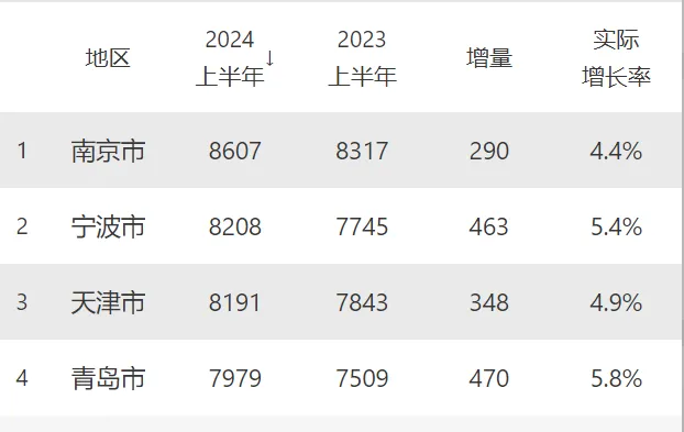 先看經濟,2023年南京GDP達到1.74萬億,今年上半年為8607.42億元,同比增長4.4%,跑輸全省和全國。