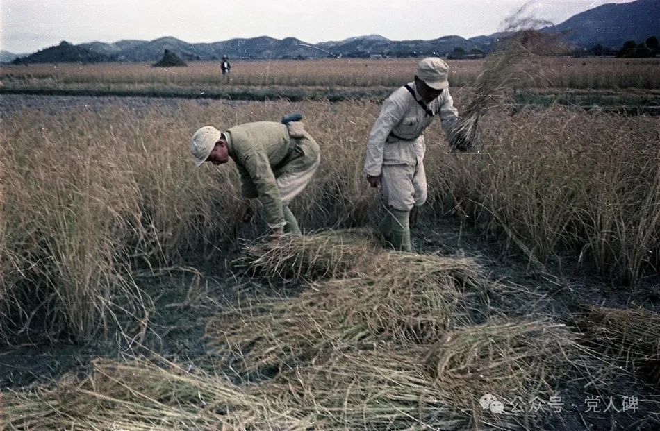 幫助羣眾割稻的解放軍幹部戰士