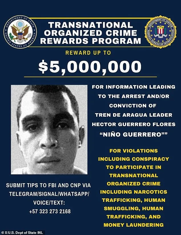 上個月,FBI將“阿拉瓜列車”認定為跨國犯罪組織,並懸賞500萬美元捉拿其頭目Hector ‘El Nino’ Guerrero Flores。