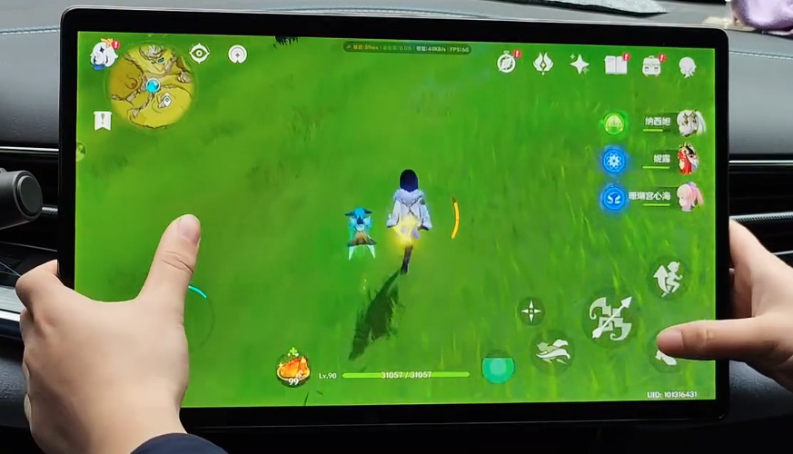 又或者,你在剛好在停車場等人,手機只剩一絲電了要留着一會和在等的人打電話,可又偏偏這會“原癮”犯了,那你完全可以打開車機大屏,在車裏面“原神啓動”。