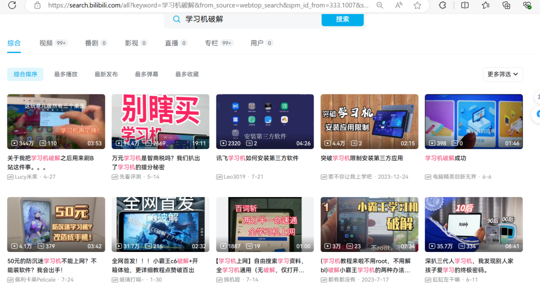 現在B站上隨便搜一條學習機破解教程,播放量就有十幾萬。