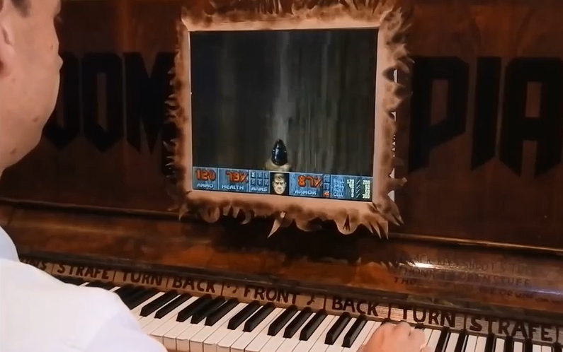 比如説,當你在音樂會上突然有了想對着惡魔頭上開兩槍的衝動,你可以用鋼琴玩毀滅戰士。