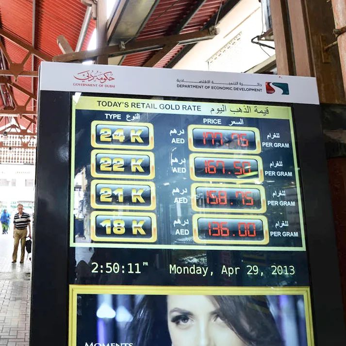 (“黃金之城”迪拜的金價牌)