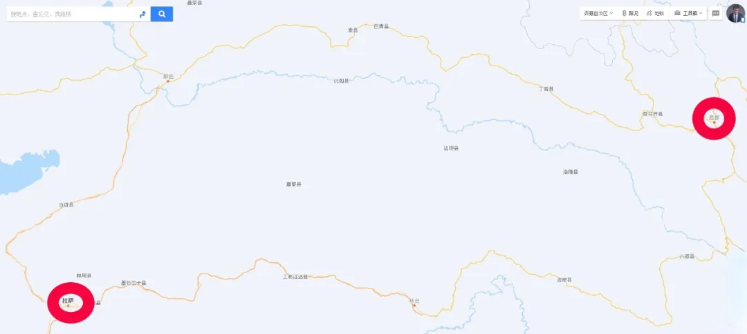 而第18軍的部隊抵達拉薩以後,立即開始勘探地形,**準備修建昌都到拉薩的公路,**確保內地的物資可以直接運到拉薩。後來經過數十年的整修、開拓,昌都和拉薩之間,最終形成這樣一條公路大環線——
