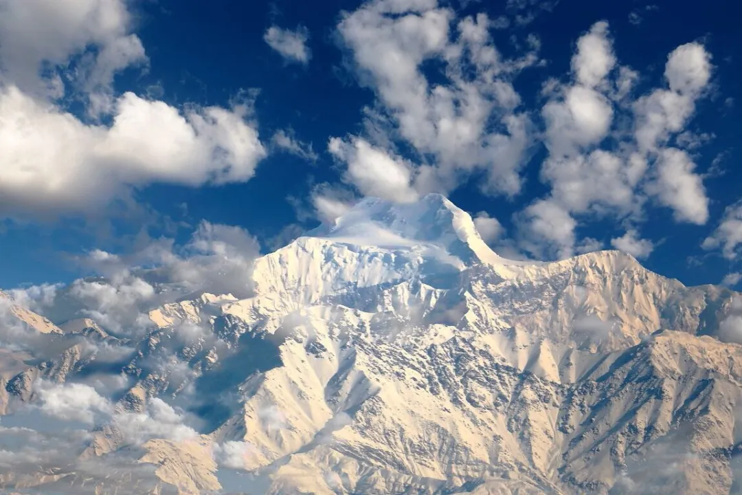 在小學語文課本中,關於托木爾峯是這樣描述的:托木爾峯上空,終年雲霧繚繞,一年四季都下雪。托木爾峯像一座銀色的巨塔,在蔚藍色天空的映襯下,十分壯觀。沿着托木爾峯起伏的山勢,一條條“河流”順谷而下。走近一看,“河”裏沒有水,全是冰,人們稱這種“河”為冰川。
