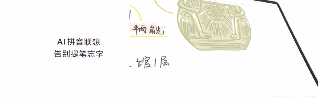 説完我不太懂的繪畫,我得好好聊一聊這次的一系列 AI 功能:除了小藝幫寫、 AI 手寫編排之外,還有一個特別戳託尼的功能—— AI 拼音聯想。