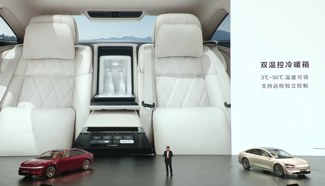 扶手的後頭,是一個冰箱,準確來説是冷暖箱,既能製冷也能制熱,大概能放四瓶飲料。