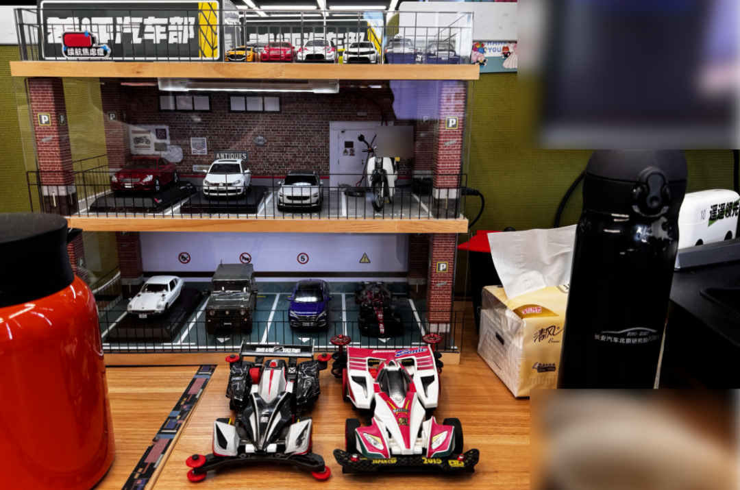 比如這位,桌面上放了氣派的停車場,停滿汽車模型得,一看就知道,是咱汽車部的同事。