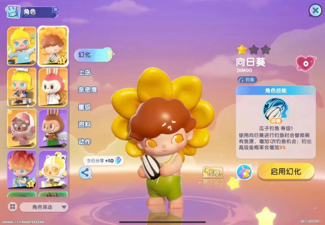 玩家通過各種勞作來建設自己的家園時,會遇到不同形象的角色們,通過幻化成他們則能獲得較大的操作便利性。比如“升空奇遇記”Molly可以同時播種和收穫4塊農田,“噴射男孩”Dimmo可以幫助角色跳得更高,“野獸”Labubu可以提升玩家移動速度……這些形象全都來自於泡泡瑪特旗下角色的盲盒形象,它們有着龐大的粉絲基礎。