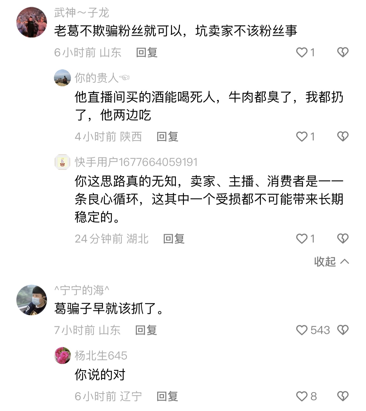 評論區有很多粉絲表示堅定支持。還有粉絲表示,老葛沒有坑過粉絲就行,坑的都是商家。
