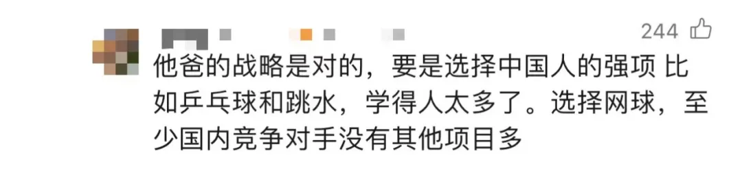 孩子是自己的,每個孩子都是不一樣的,每個家庭也不一樣。現在很多人只喜歡説鄭欽文爸爸掏盡家財、背水一戰、豪賭女兒的明天……反而沒有人去講鄭欽文自身的天賦、努力、熱愛。