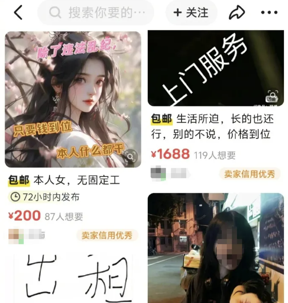 近日,有網友在閒魚搜索二手空調時,竟意外揭露了一條隱蔽的灰色產業鏈,不法分子以售賣二手空調為幌子,暗中提供色情服務。據悉,在該商家出售空調的頁面上,圖片背景為掛在牆上的空調,左下角有不同的美女照片,而在價格界面,顯示50元至600元不等,諮詢後發現實為色情服務。