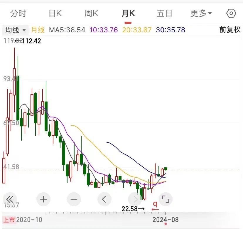 在2021年1月達到112.42元的歷史高點後,九號公司股價一路下跌,在今年2月初觸及股價低點22.58元,相比上市發行價18.94元漲幅僅有19%。連續數年的下跌與上市時的盛況形成鮮明對比——當年九號公司上市後首日漲幅104.8%,7個交易日漲幅總計260.7%。