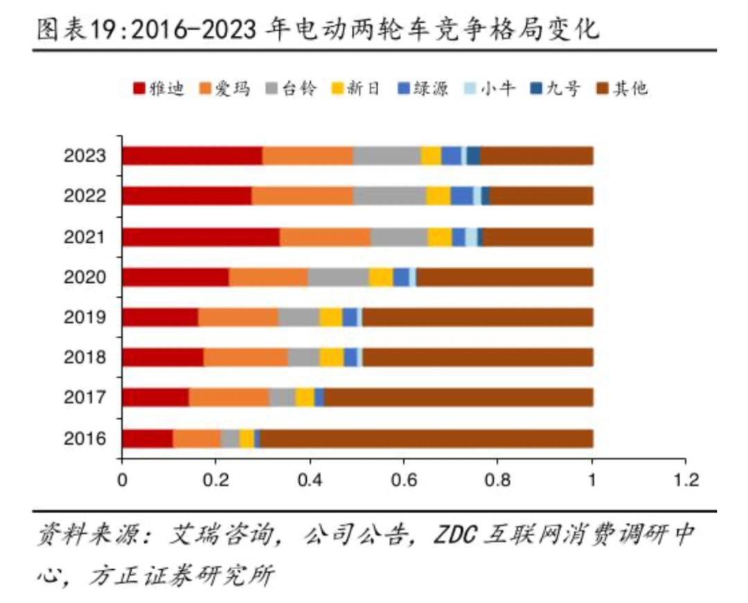 近年兩輪電動車市場競爭格局變化,圖源方正證券研報
