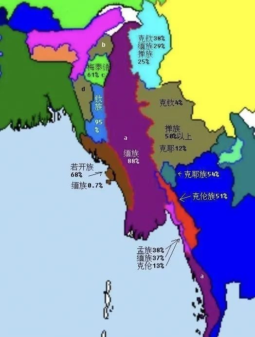 第三,下緬甸是緬族較晚征服的地區,緬族在當地人口占比中未形成絕對多數。將統治中心設在此處,有利於英國分化緬、孟、克倫等族。