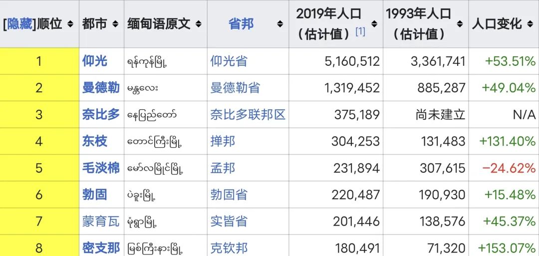 1973年,仰光人口突破200萬,佔當年緬甸人口的7%,至1989年突破450萬,人口占比提升到11.4%。