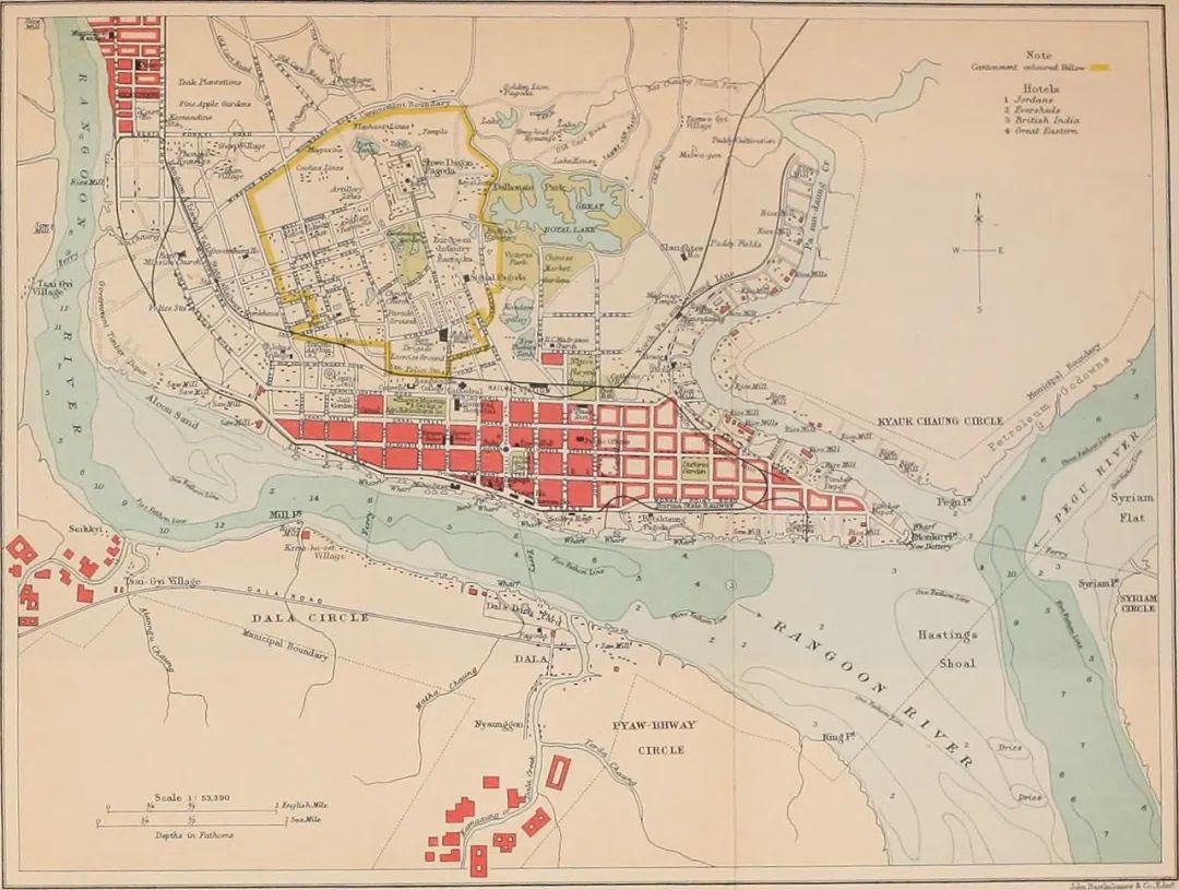 首先,仰光地處印度洋東北側,坐落於下緬甸中心地帶,貢榜王朝曾在此設立總督管理伊洛瓦底江三角洲,能夠很好的輻射緬甸省,便於英國統治這片新殖民地。
