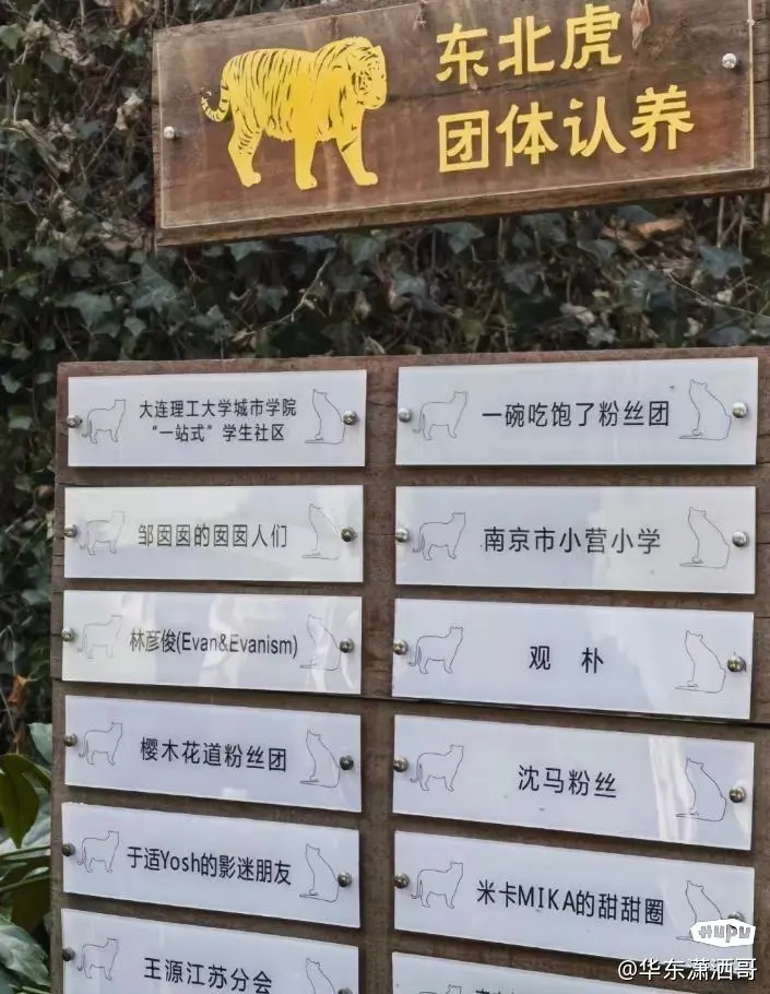比如,紅山動物園的東北虎,就先後被櫻木花道粉絲團、王源江蘇粉絲團、於適的影迷認領。