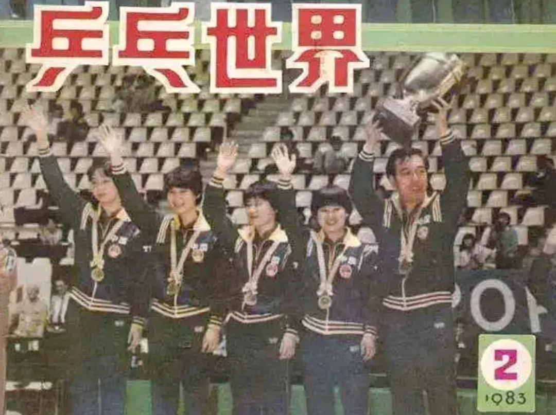 1983年世乒賽奪冠畫面,右二為倪夏蓮巧合的是,倪夏蓮同樣擅長“長膠”,説她是這一打法的祖師奶也不為過。