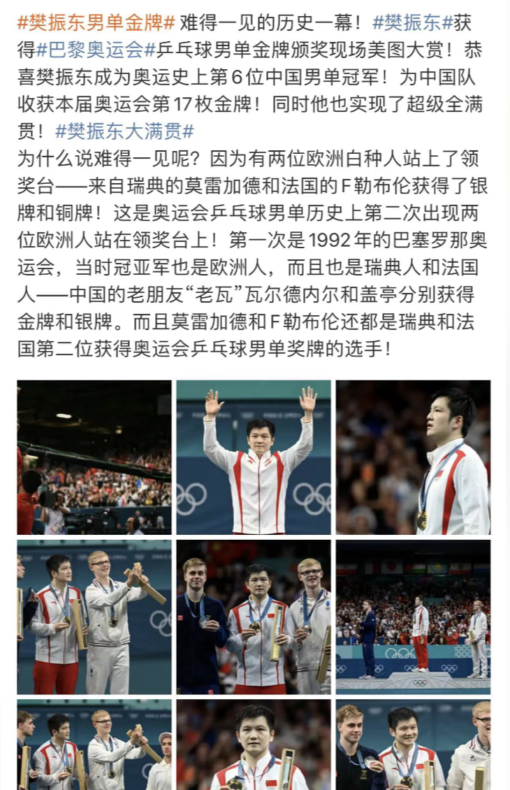樊振東獲得奧運乒乓球男單金牌的那天,很少有人注意到乒乓球男單的獎台上同時站着兩位歐洲人所代表的含義。