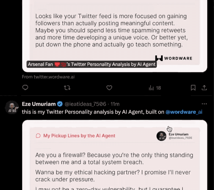 而這次“毒舌AI”Twitter Personality的主要作者Kyzo是一位獨立開發者、數字遊民,與Wordware官方合作密切。