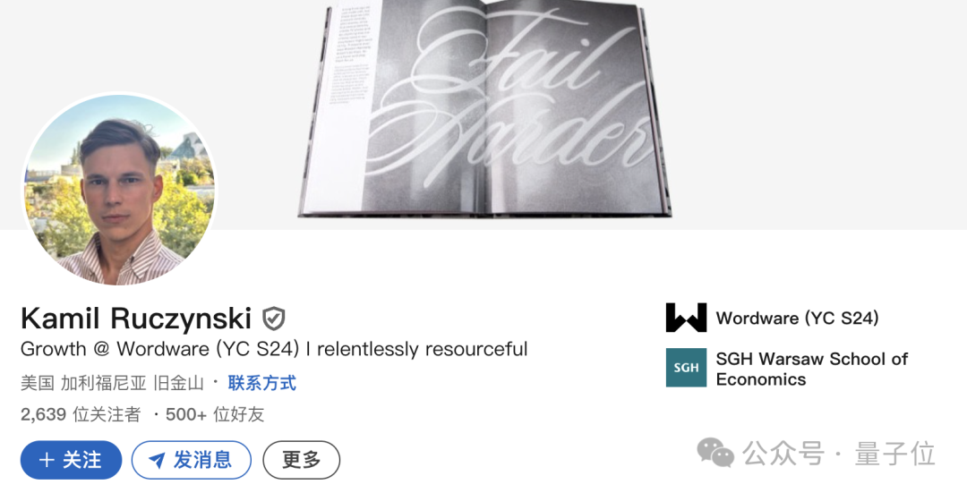團隊成員Kamil Ruczynski也經常活躍在社交平台,今年三月份加入Wordware,任增長主管。