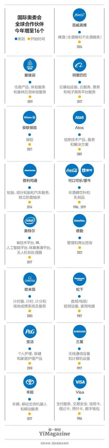 佔到奧運先機最有利的位置,應該就是成為國際奧委會的全球官方合作伙伴,拿到官方入場券。但是,這個名額很少,2024年全球只有16個,中國品牌中有阿里巴巴和蒙牛。