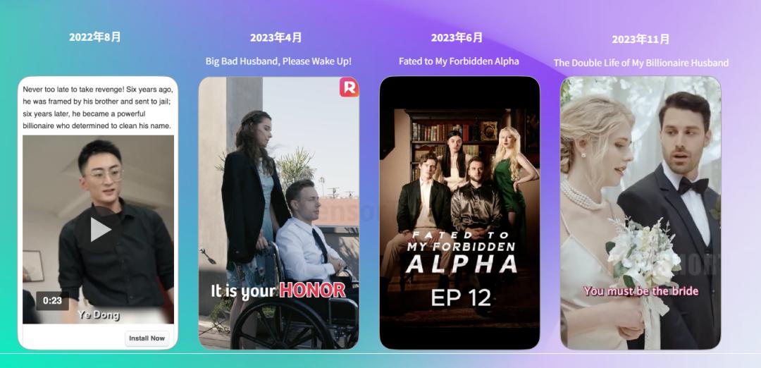 在Reelshort的崛起歷程中,我們得以窺見海外短劇的爆款密碼。2022年8月上市到2023年5月期間,Reelshort下載量和收入並無明顯增長。直到平台推出了《命中註定的禁忌狼人阿爾法》、《愛上秘密億萬繼承人》、《億萬富翁丈夫的雙面人生》等瑪麗蘇短劇,平台的單日下載量和流水飆升。
