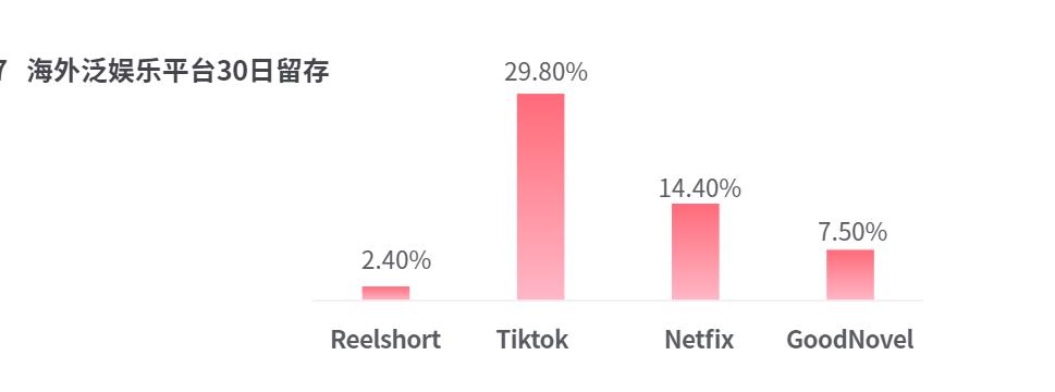 《2023年海外出海白皮書》(以下簡稱《白皮書》)顯示,目前海外的短劇平台主要是靠新劇之後的投流激增來創造收入,30天內留存率較低,仍以ROI打法為主,無法形成較強的品牌效應。頭部平台Reelshort在30天內的留存僅有2.4%,相較之下,頭部長視頻平台Netflix有14.4%,先一步出海的網文平台GoodNovel也有7.5%。