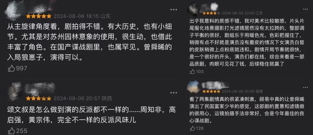 無論是演員方面,受《狂飆》和《蓮花樓》的濾鏡加持,實力派國民演員張頌文、青年演員曾舜晞雙雄對決讓人吊足胃口,還是劇情方面,在婉約柔情的江南水鄉,上演懸念迭起的諜戰故事,又做到如此高密度、高烈度、高濃度,都讓《孤舟》提前預定了年度品質諜戰劇的一席之地。