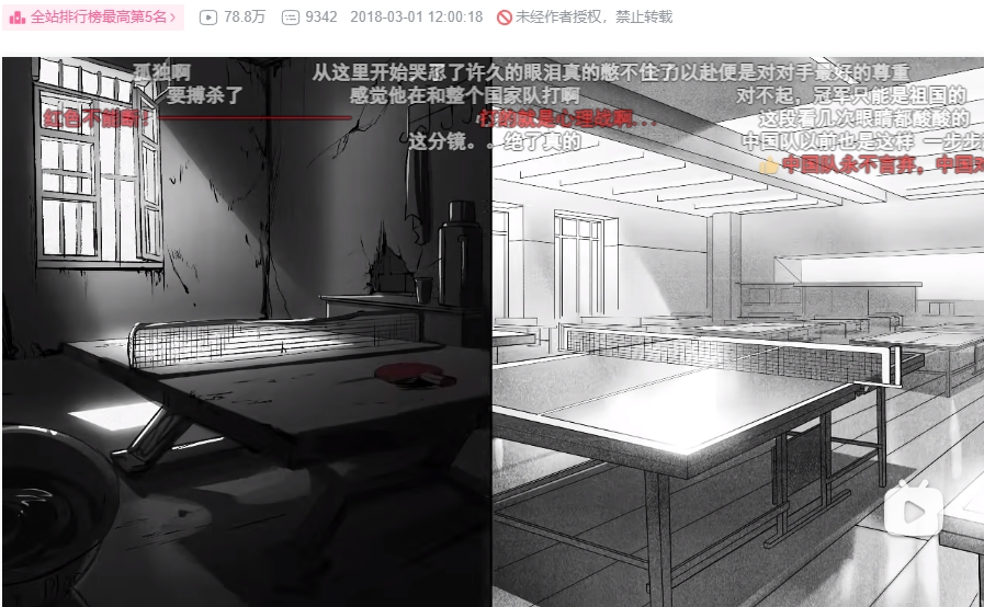 2018年B站春晚的動漫節目《乒乓帝國》中就有過這種討論,動漫講述貧窮出身、沒有教練團隊的非洲選手LEO,獨自一人在奧運會挑戰中國王牌選手小馬惜敗的故事。