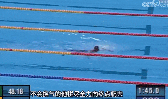 ▲艾瑞克·姆薩巴尼在奧運會中用時1分52秒,以類似“狗刨”的姿態完成比賽。作為對比,今年同項目比賽中中國選手潘展樂的成績是46.40秒。