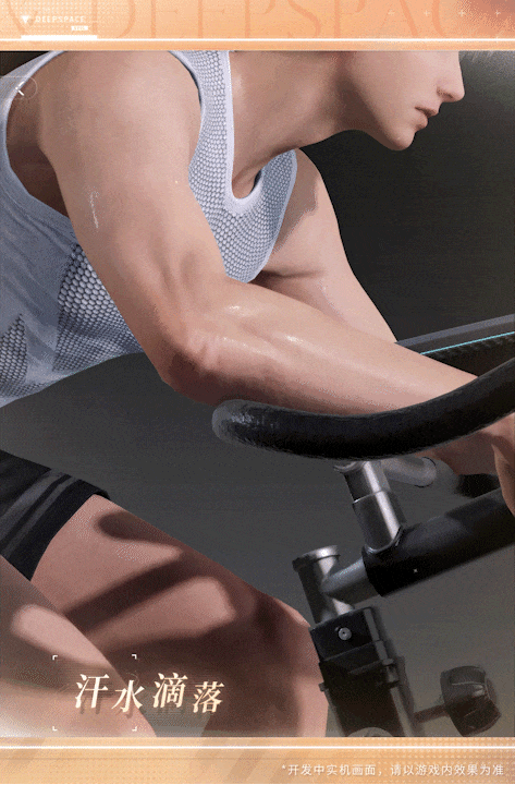 除了肢體互動,另一個典型的例子是遊戲中的運動陪伴。玩家可以與男主角黎深、沈星迴、祁煜一起健身鍛鍊,在這個過程中,男主角們並沒有被定義為玩家的“教練”,而是“夥伴”,與玩家保持着相對平衡的關係。與此同時,還可以360度無死角地觀察男主角們運動時的狀態,他們肢體勻稱、動作流暢,急促的呼吸與滴落的汗水都讓許多玩家頗為滿意。