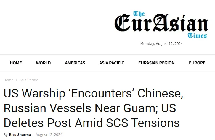 美媒認為,儘管中俄聯合艦隊沒有透露具體的巡邏路線,但抵達了西太平洋和北太平洋的部分海域。“中國和俄羅斯都沒有提到靠近關島,但從距離來看,它們可能已經到達美國最西端的領土——關島”。