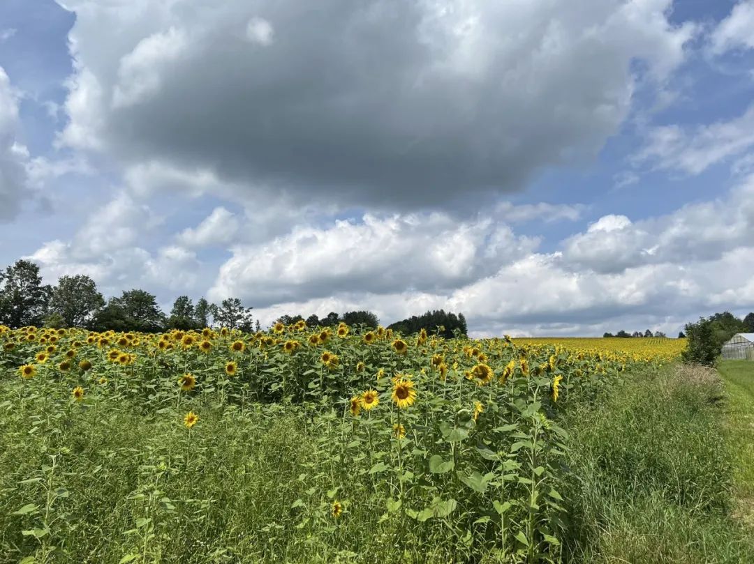 如今走在這鄉野小路,兩邊是盛放的向日葵花田,綿延到了天邊,它們美得恣意卻完全無人欣賞。